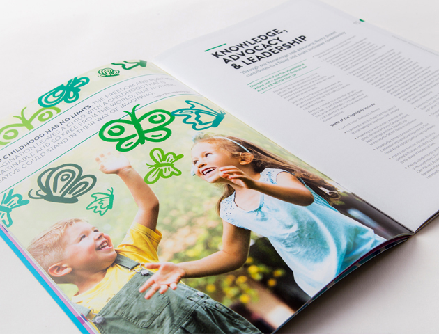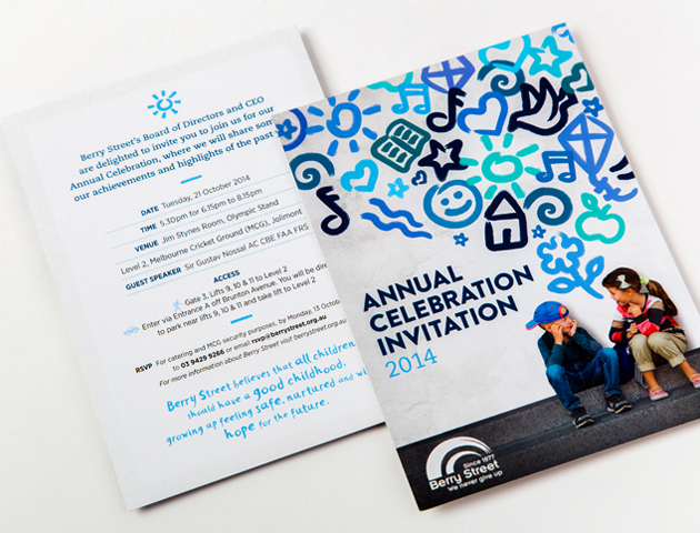 Our annual report design for Berry Street included concept development and infographics, as well as illustrations. The design brief required that we communicate two themes.