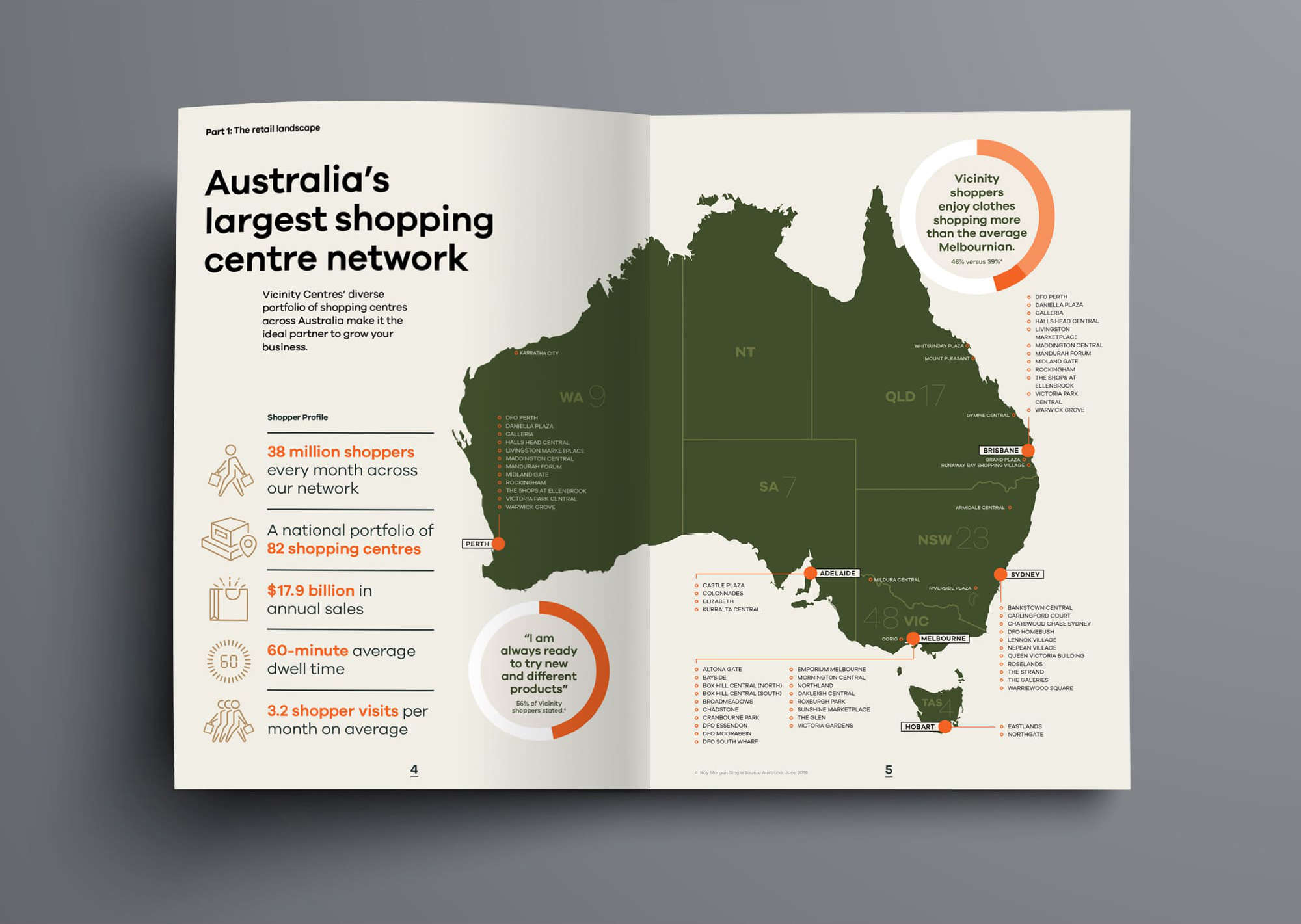 We were given the opportunity to work alongside the marketing and sales team at Vicinity Centres to design the national sales brochure. We explored several creative concepts which were to demonstrate the powerful benefits of physical brand exposure at key shopping centre precincts Australia wide, including the world-class Chadstone shopping centre, in Melbourne.